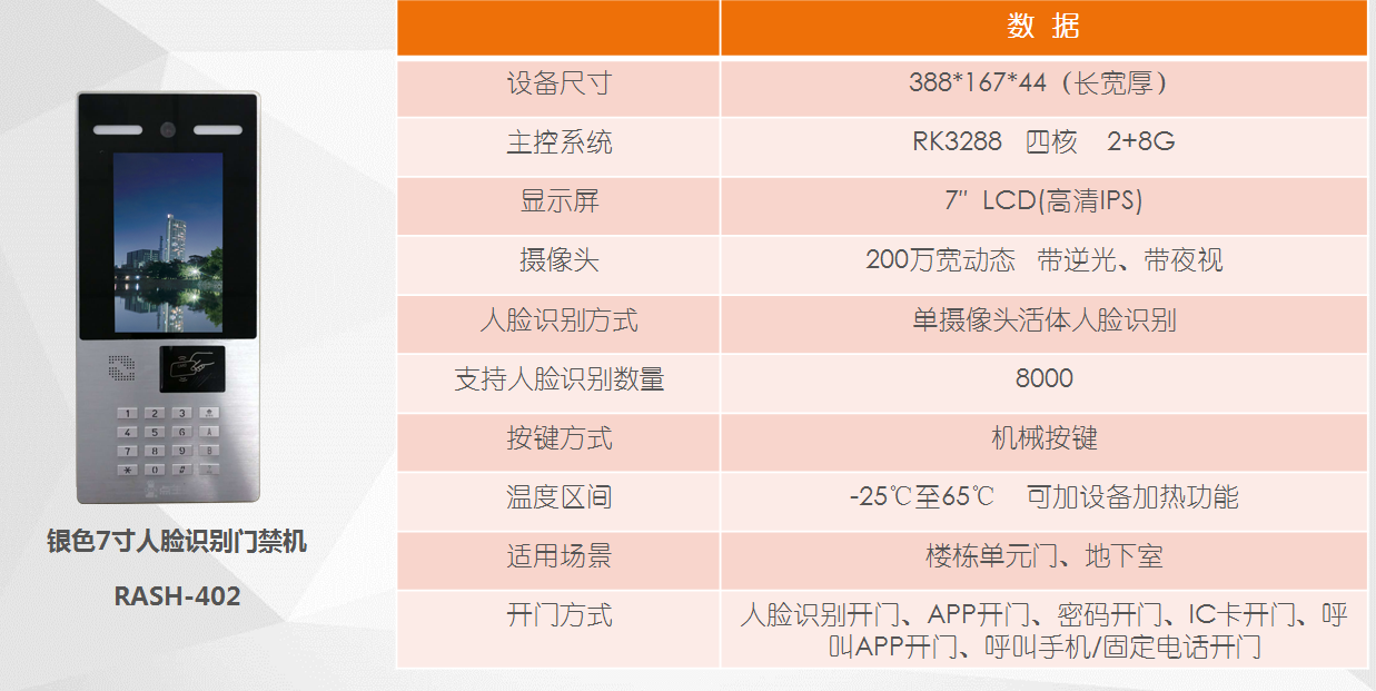 银色7寸人脸识别门禁机 RASH-402